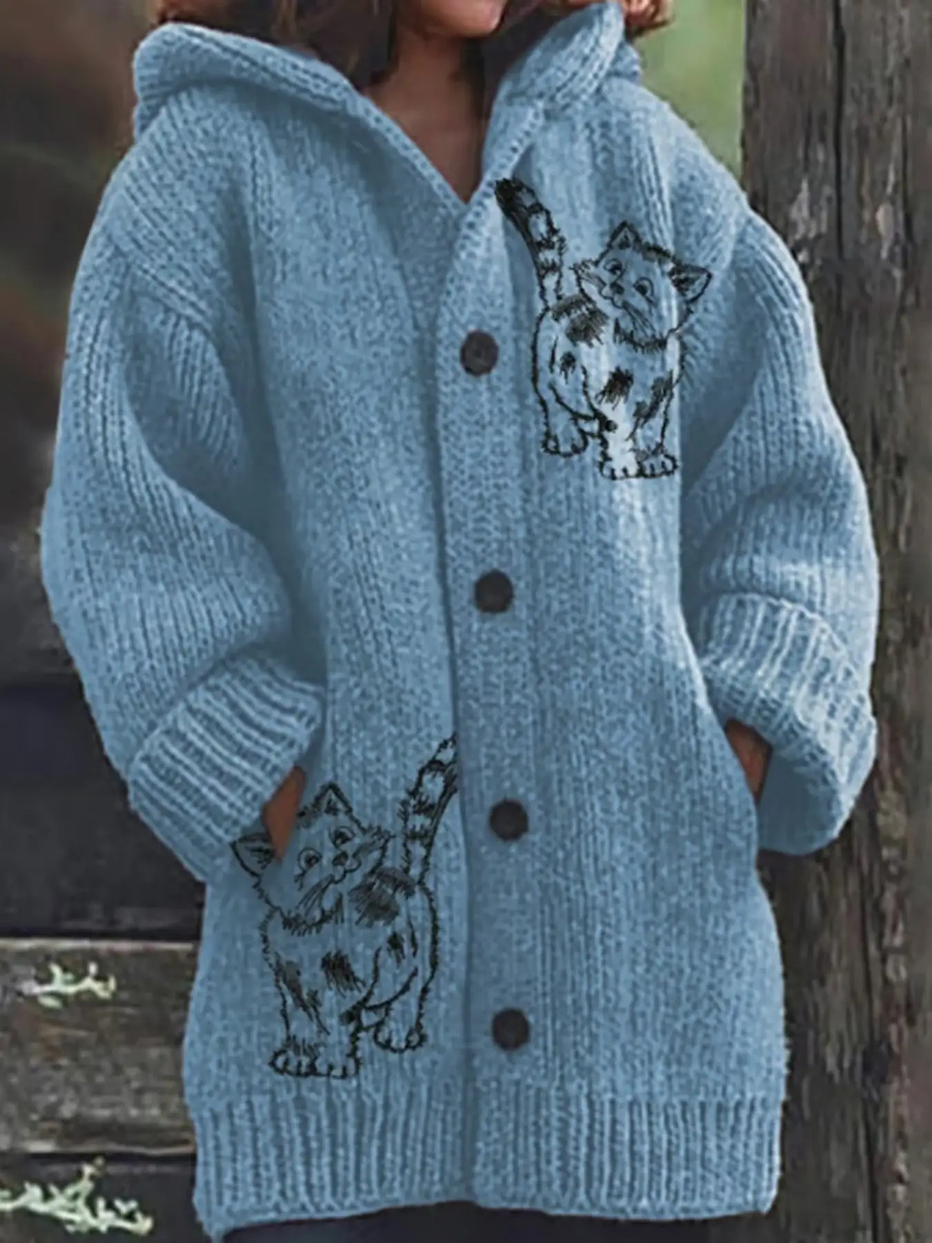 Plus Size Women'S Oversized Loose Fit Hooded Sweater Jacket - Cozy Winter Warm Coat with Print & V-Neck, Full-Zip Front Closure, Machine Washable Casual Outerwear for Curvy Women, Plus Size Sweater Coat for Fall and Winter, Sweaters for Women
