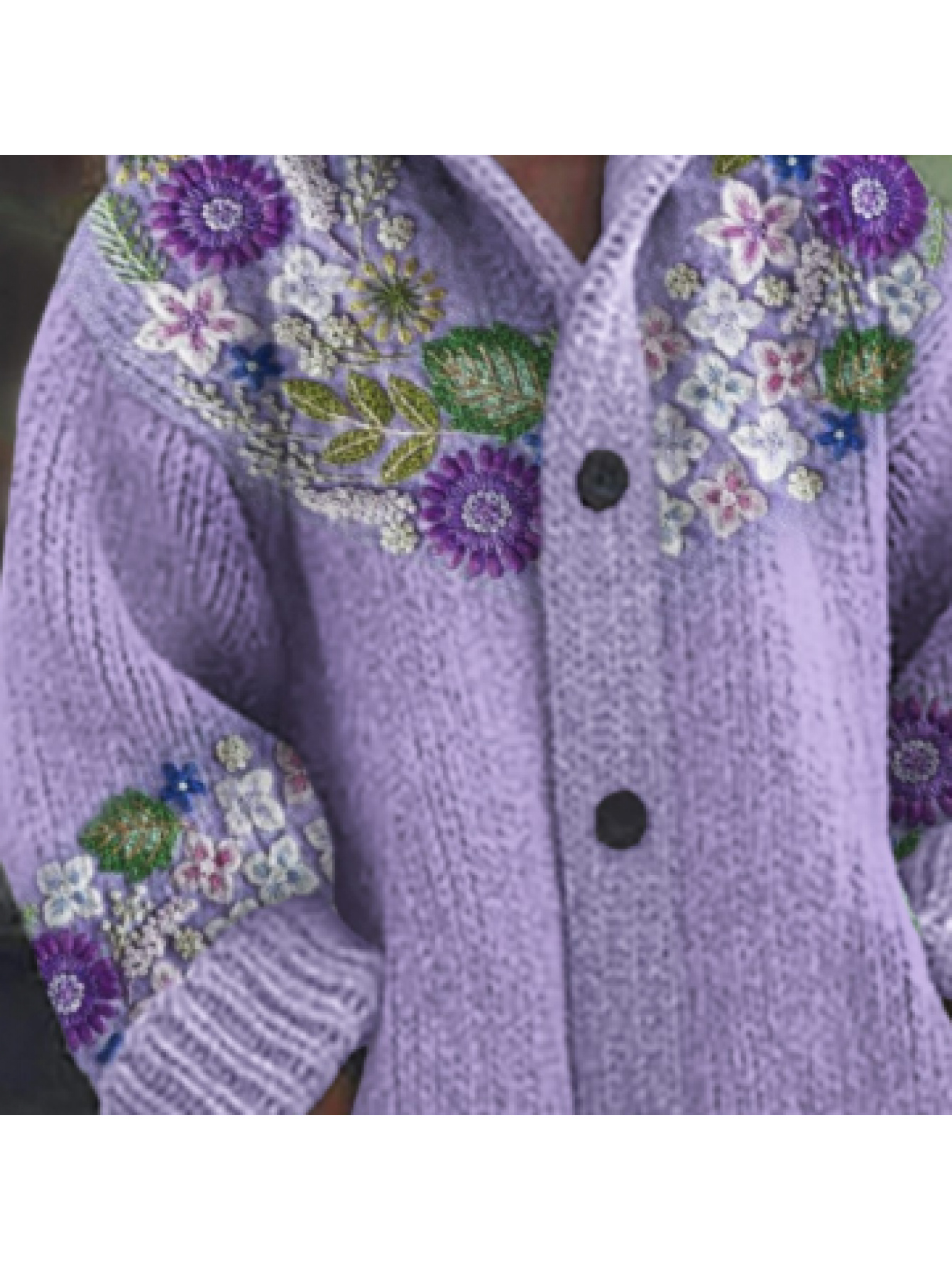 Women'S Winter Hooded Sweater with All-Over Digital Print - Soft Long Sleeve Button-Front Sweater, V-Neck Casual Streetwear Top, Cozy Fall & Winter Sweater for Women, Trendy Multicolor Printed Sweater for Everyday Outfits, Cropped Sweaters for Women