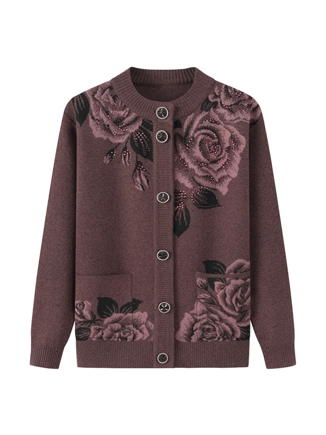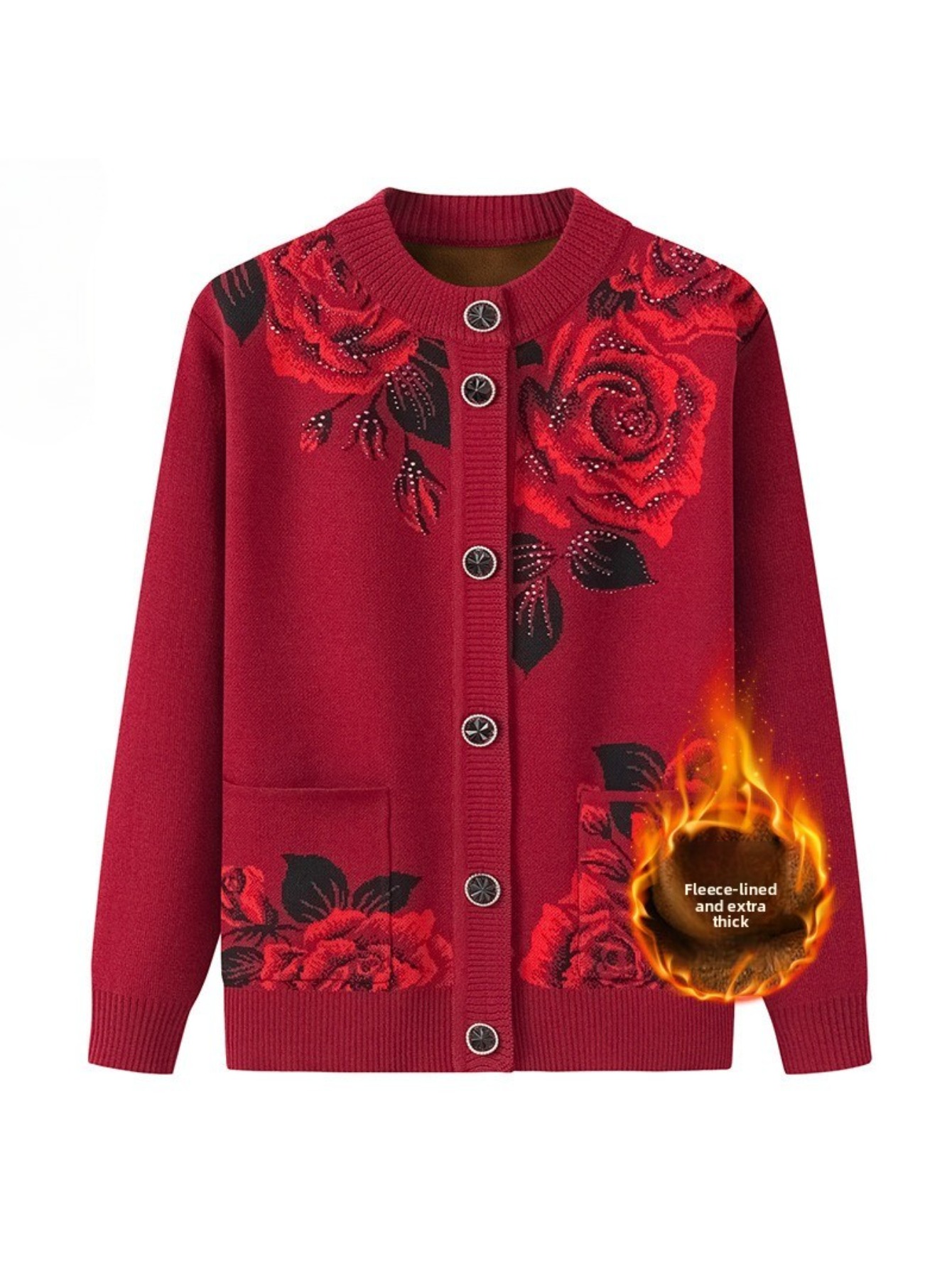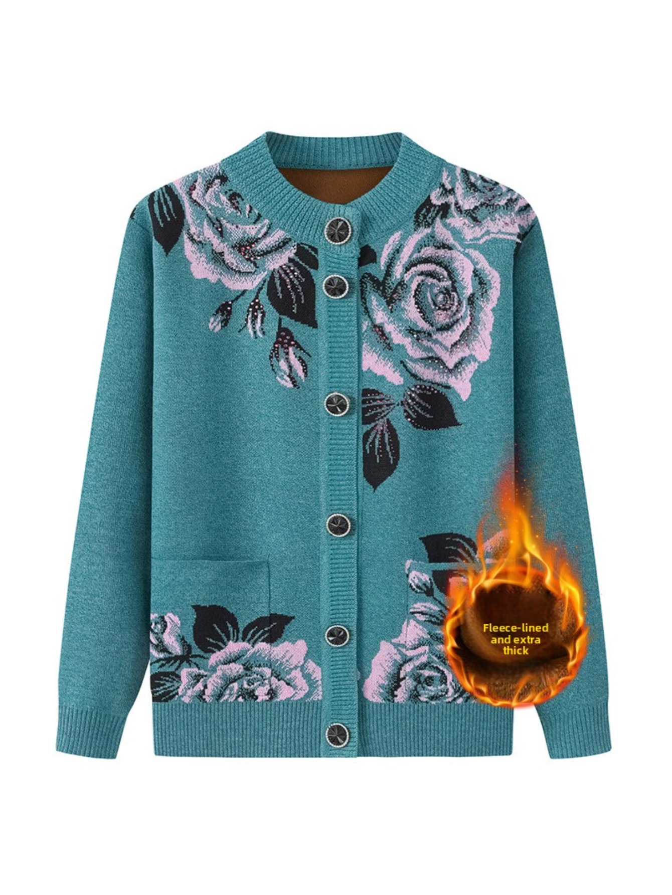 Middle-aged and Elderly Fleece Cardigan | Thick Jacket for Moms, Autumn and Winter Warm Elderly Clothing, Comfortable and Soft, Regular Length, Crew Neck, Button Details, Casual Style