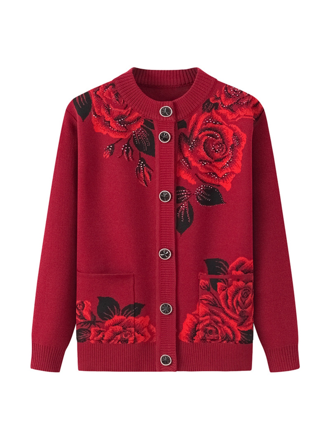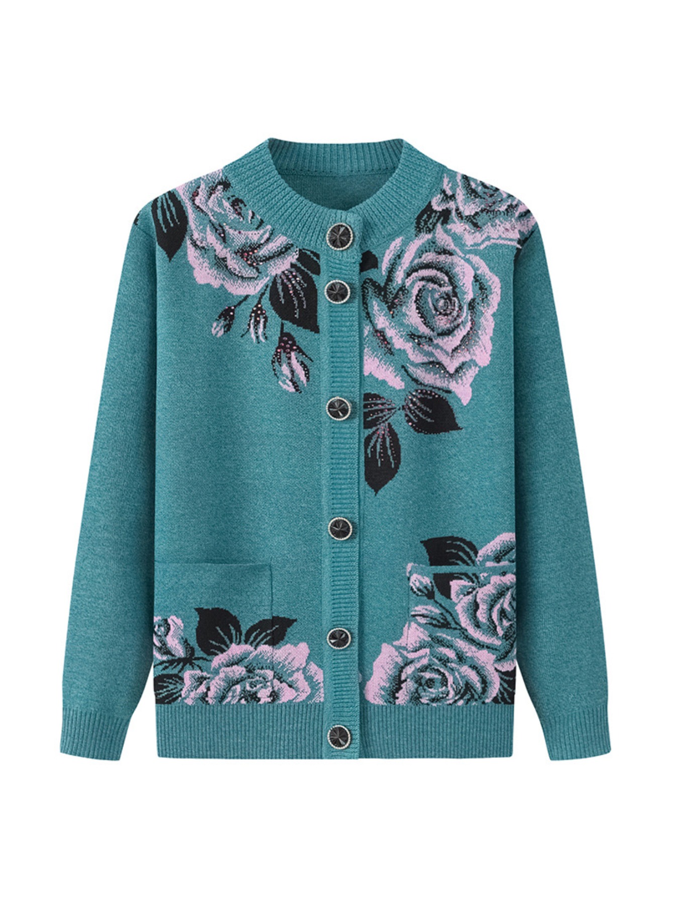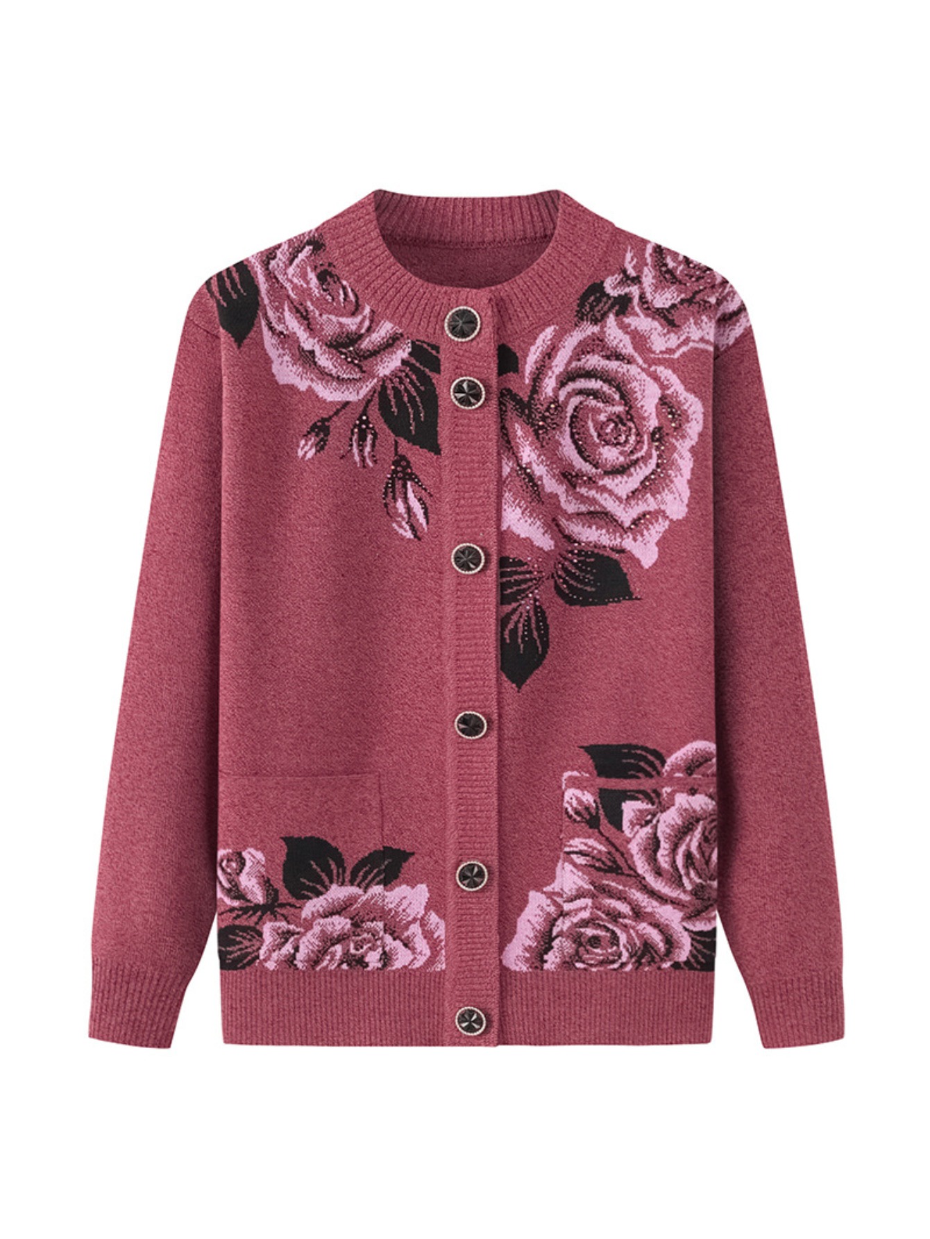Middle-aged and Elderly Fleece Cardigan | Thick Jacket for Moms, Autumn and Winter Warm Elderly Clothing, Comfortable and Soft, Regular Length, Crew Neck, Button Details, Casual Style