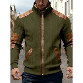 Lightweight Retro-Inspired Men's Casual Jacket - Solid Color, Baseball Collar, Machine Washable Zip-Up