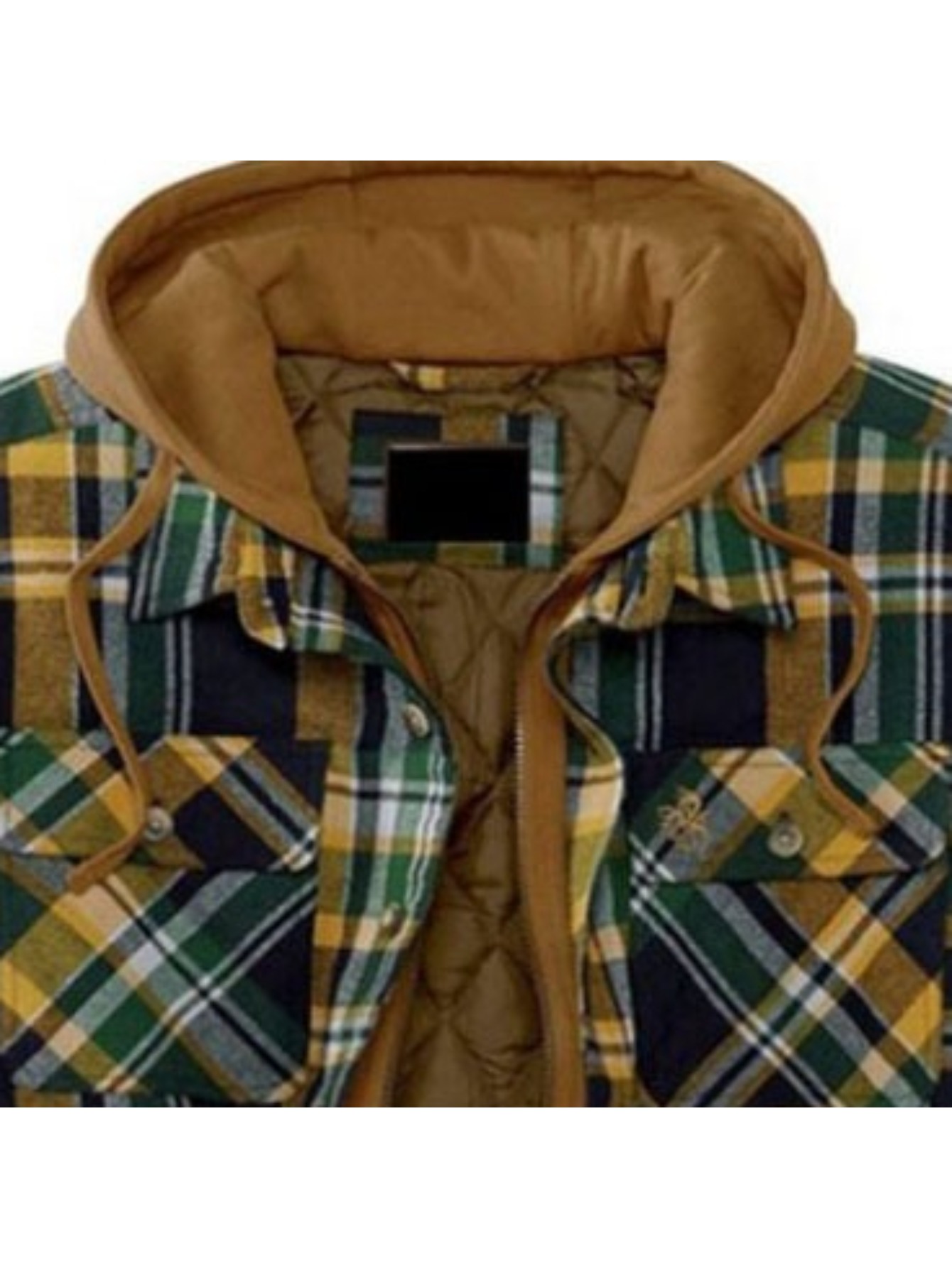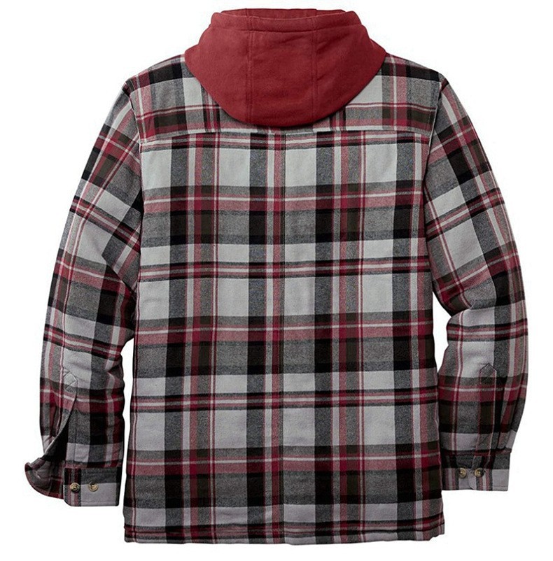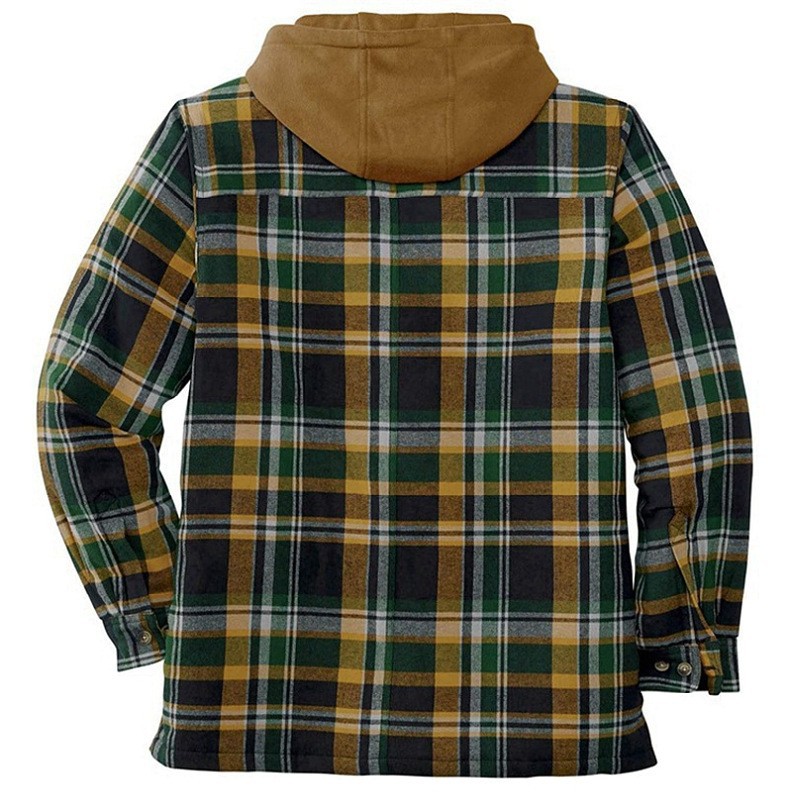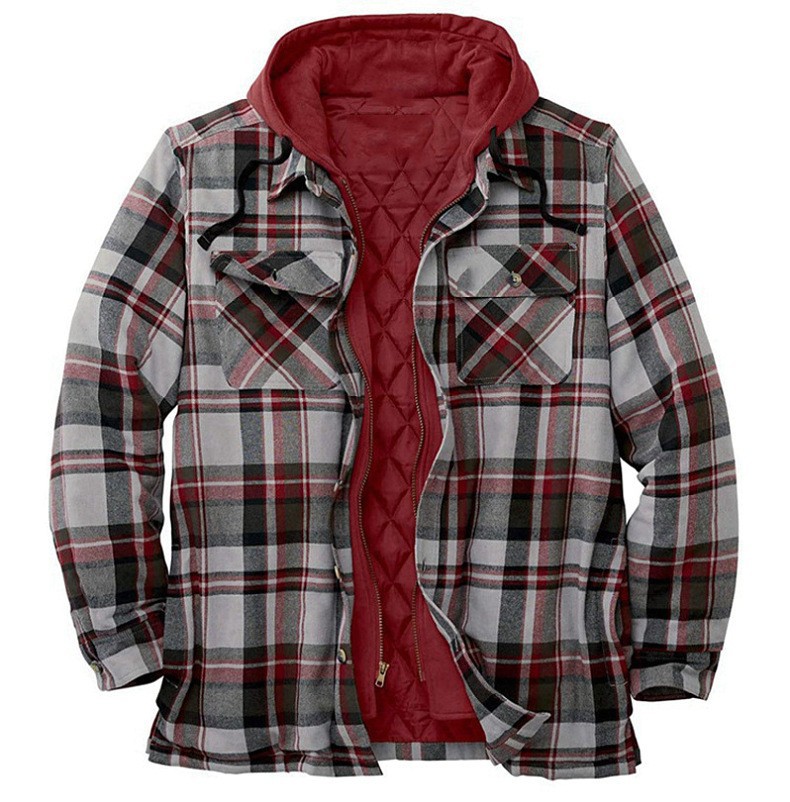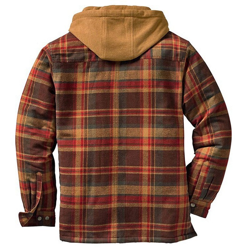 Men'S Heavyweight Thermal Insulated Hooded Jacket - Winter Coat with Full-Zip Closure, Relaxed Fit Plaid Outerwear, Full-Zip Front, & Warm Insulation for Cold Weather, Casual & Formal Outfits (Brown/Red/Tan) - Ideal for Everyday & Formal Events