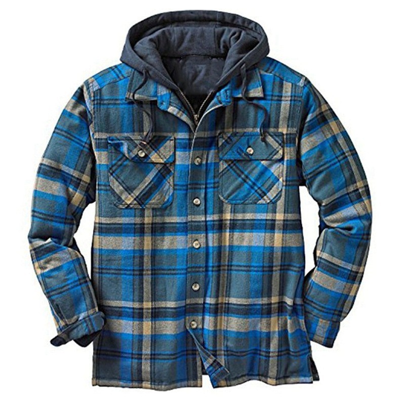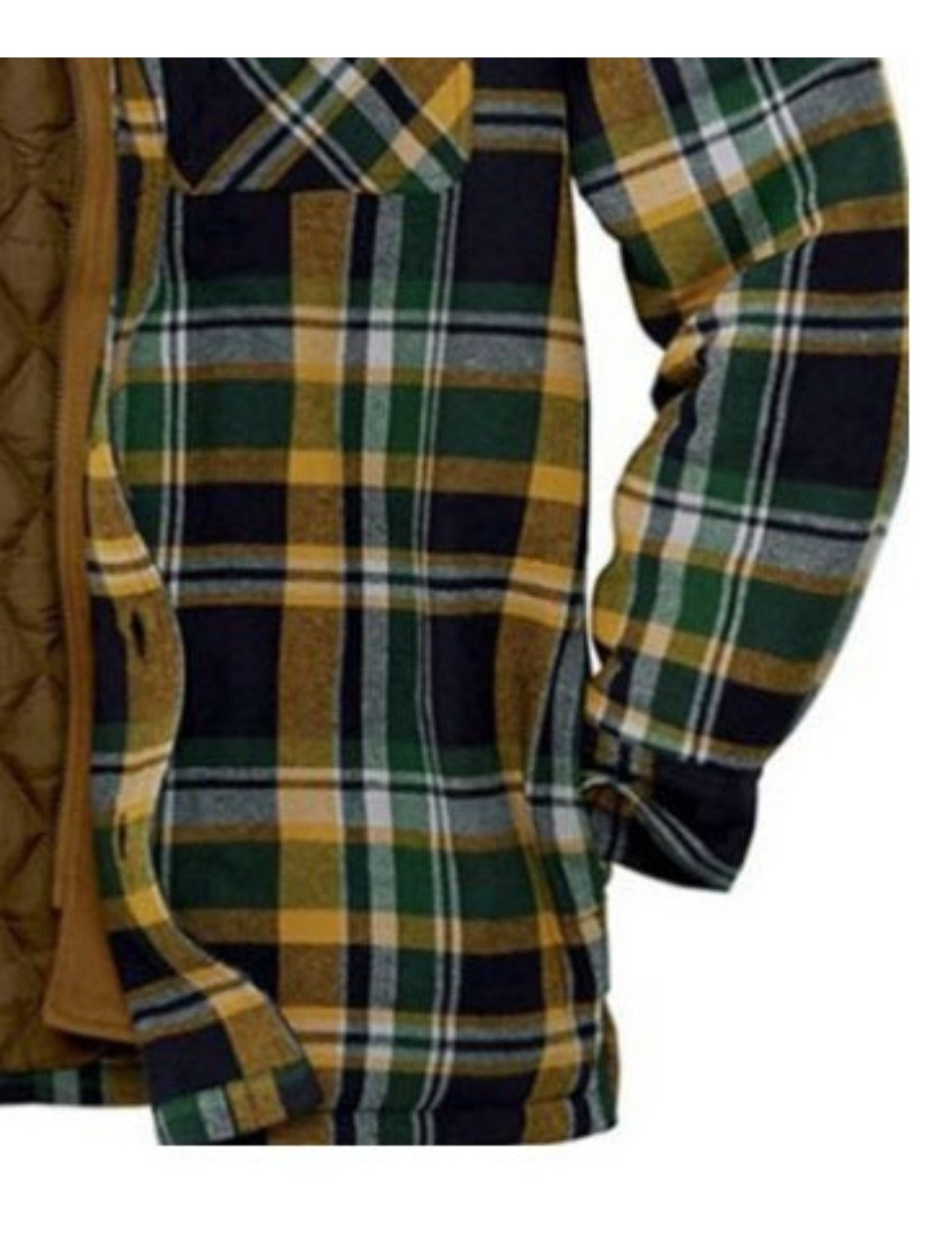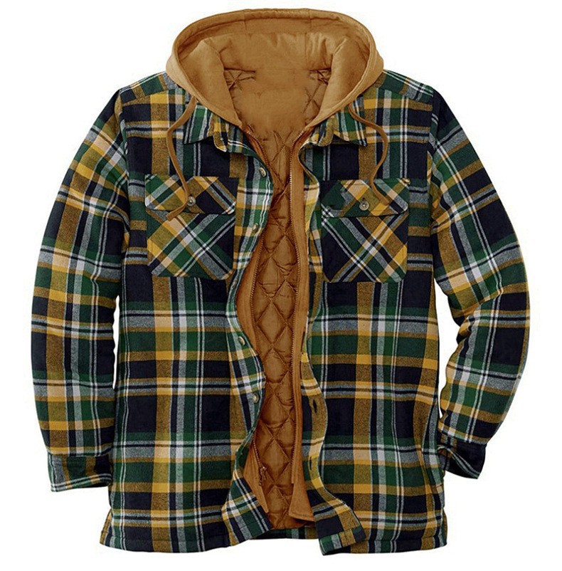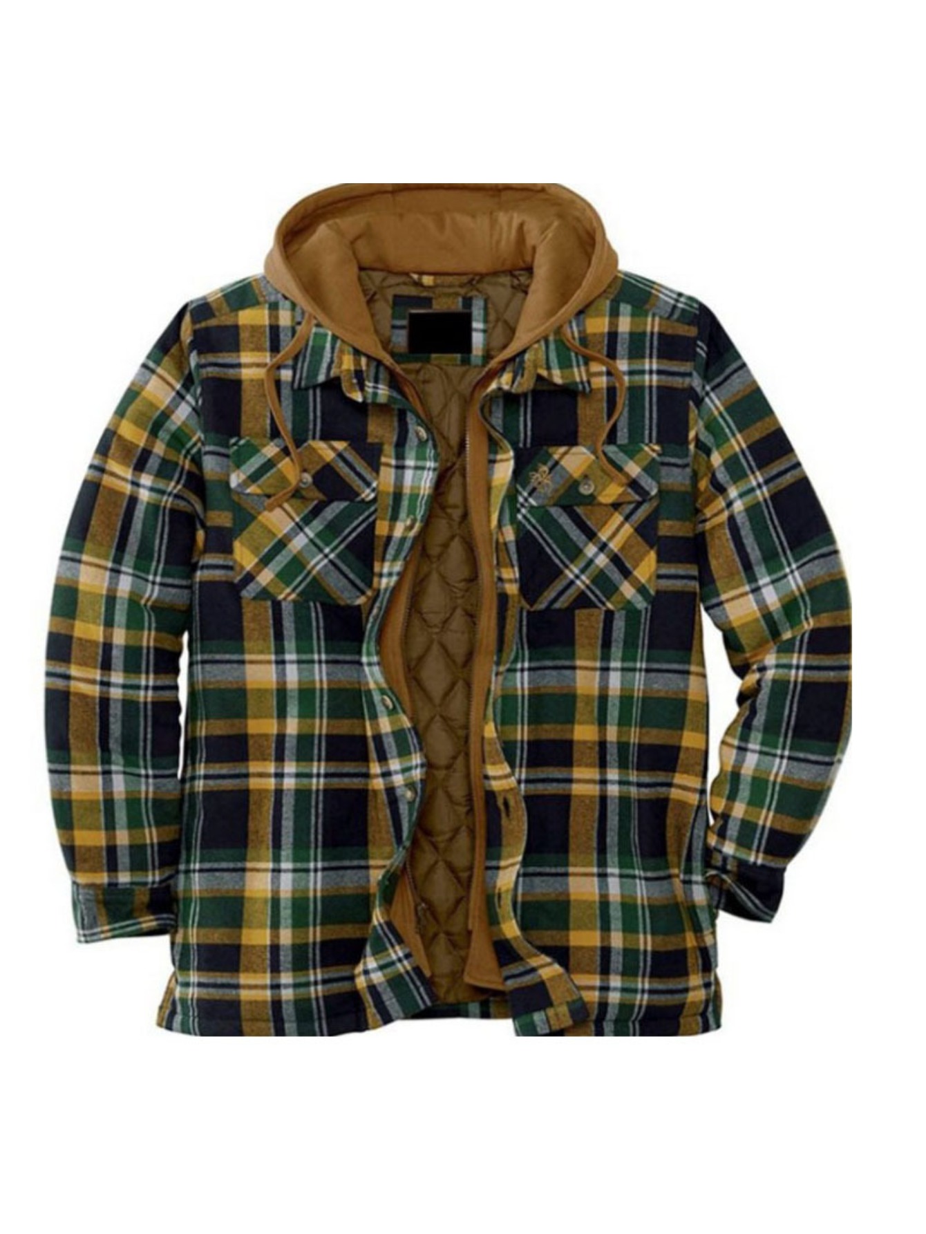 Men'S Heavyweight Thermal Insulated Hooded Jacket - Winter Coat with Full-Zip Closure, Relaxed Fit Plaid Outerwear, Full-Zip Front, & Warm Insulation for Cold Weather, Casual & Formal Outfits (Brown/Red/Tan) - Ideal for Everyday & Formal Events