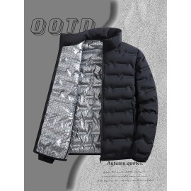 Men'S Stand Collar Thin Jacket | Casual Style, Regular Fit, Filler, Pocket Details, Autumn-Winter Trendy Short Coat