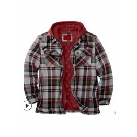 Men'S Heavyweight Thermal Insulated Hooded Jacket - Winter Coat with Full-Zip Closure, Relaxed Fit Plaid Outerwear, Full-Zip Front, & Warm Insulation for Cold Weather, Casual & Formal Outfits (Brown/Red/Tan) - Ideal for Everyday & Formal Events
