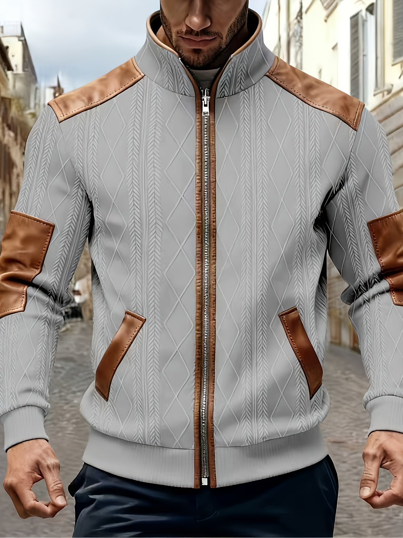 Men'S Jacquard Coat for Fall And Winter, Ideal for Relaxed Outdoor Use, Cardigan Style