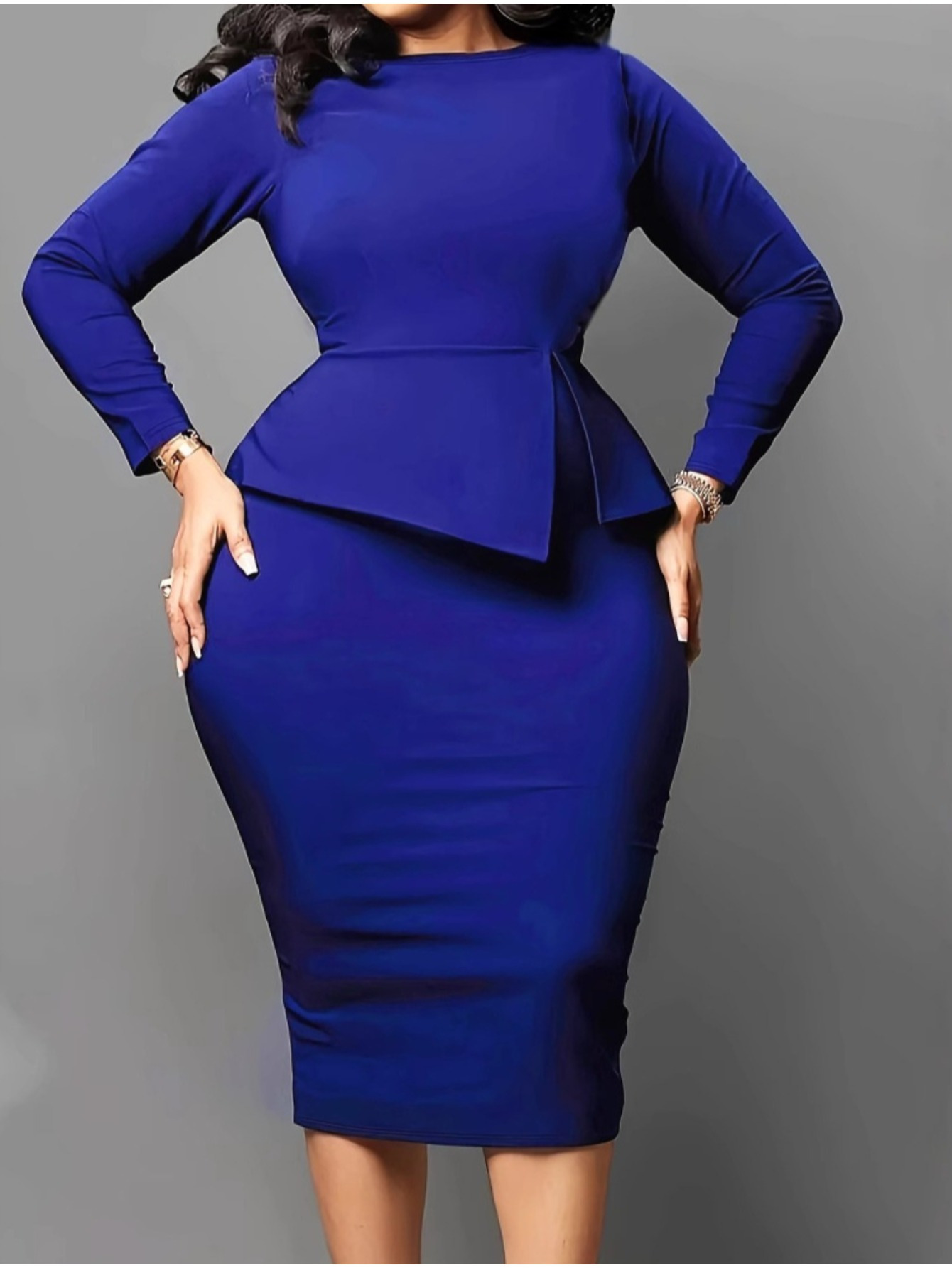 Plus-Size Women's Elegant Slim-Fit Wrap Dress - Navy Blue Pencil Skirt & A-Line Silhouette, Structured Waist-Cinching Office Church Wedding Guest Dress, Machine Washable Work Attire (No) for Year-Round Wear