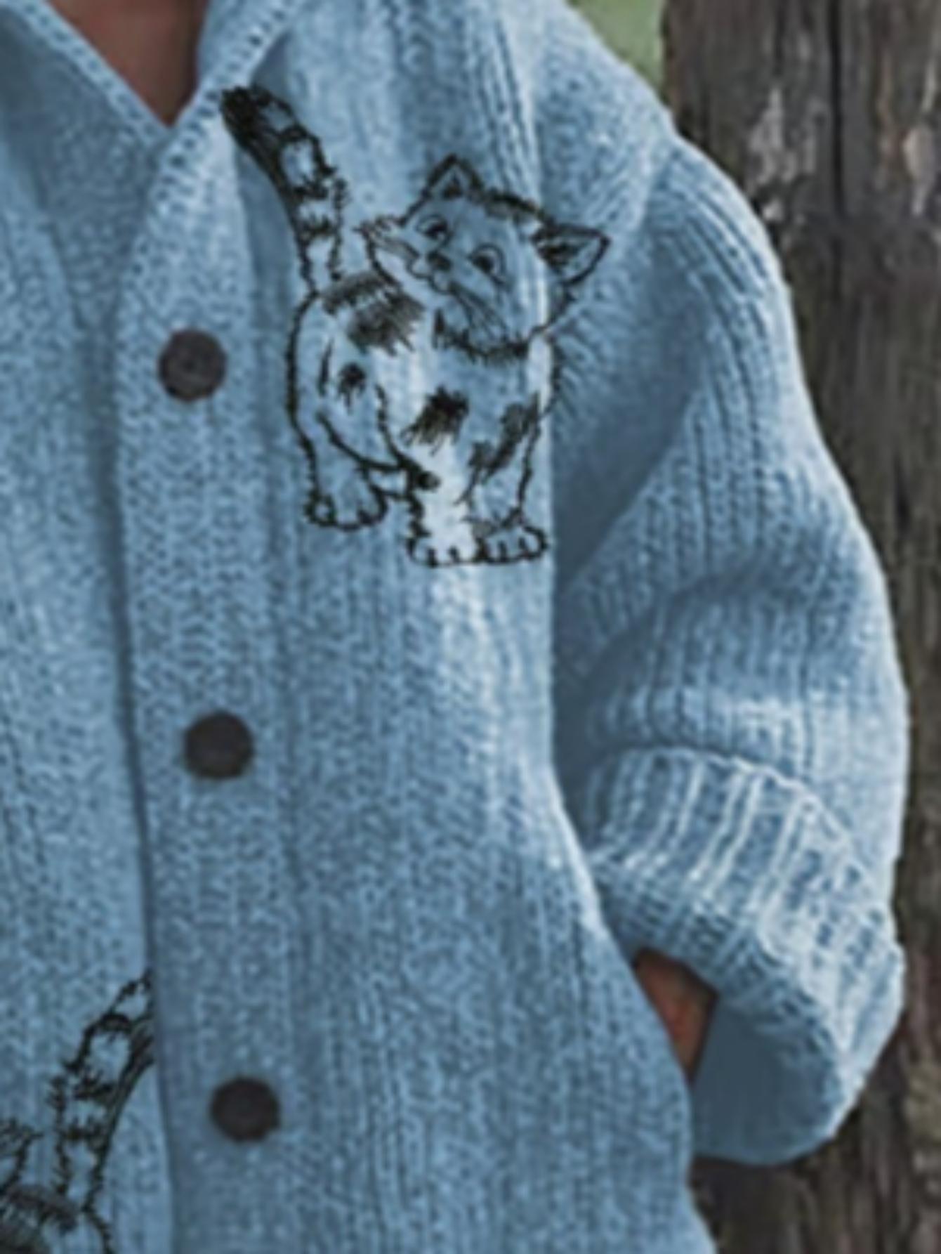 Plus Size Women'S Oversized Loose Fit Hooded Sweater Jacket - Cozy Winter Warm Coat with Print & V-Neck, Full-Zip Front Closure, Machine Washable Casual Outerwear for Curvy Women, Plus Size Sweater Coat for Fall and Winter, Sweaters for Women
