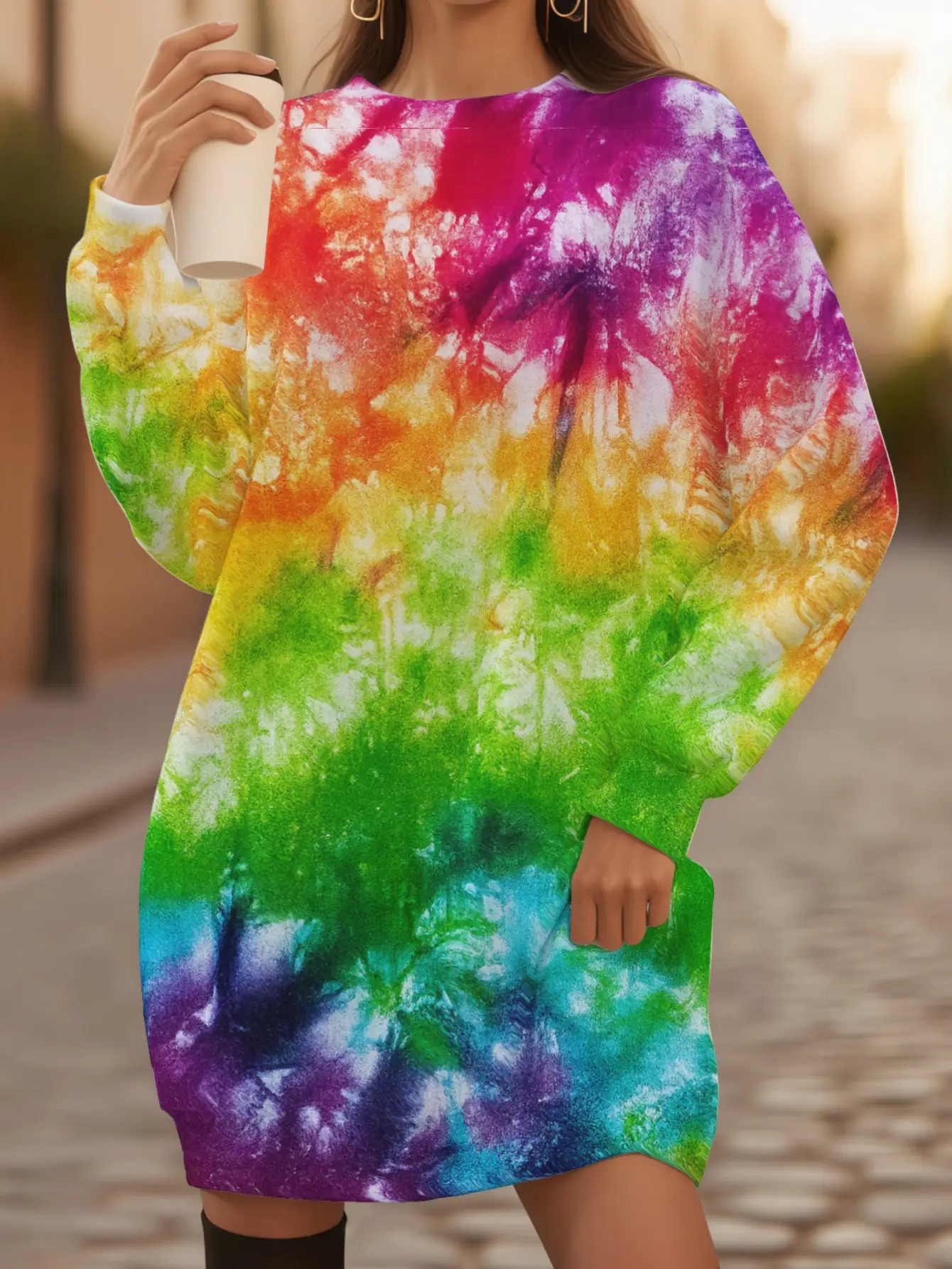 Women's Plus Size Multicolor Tie-Dye Sweater - Psychedelic Pink/Blue/Green/Orange/Purple Full-Body Print Loose Crew Neck Pullover | Machine Washable Winter Sweater Suitable for Casual & Formal Wear, Four-Season Comfort Rainbow Sweater